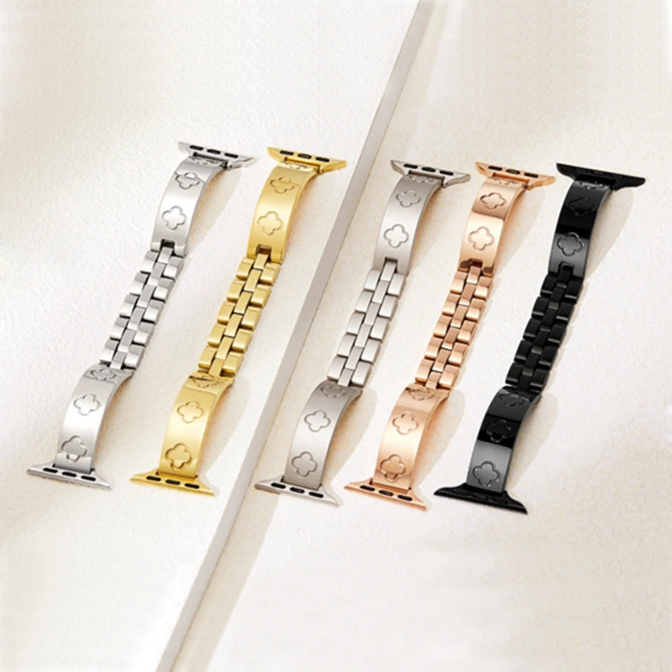 Una correa inspirada en el diseño de lujo icónico, adornada con delicados tréboles de cuatro hojas grabados a mano y pulidos hasta lograr un brillo impecable. Fabricada en acero inoxidable 316L de la más alta calidad, esta pieza ofrece una durabilidad excepcional y un estilo inconfundible, que combina sofisticación y significado en cada detalle. Luce suerte y lujo en tu muñeca con Lucky Love.