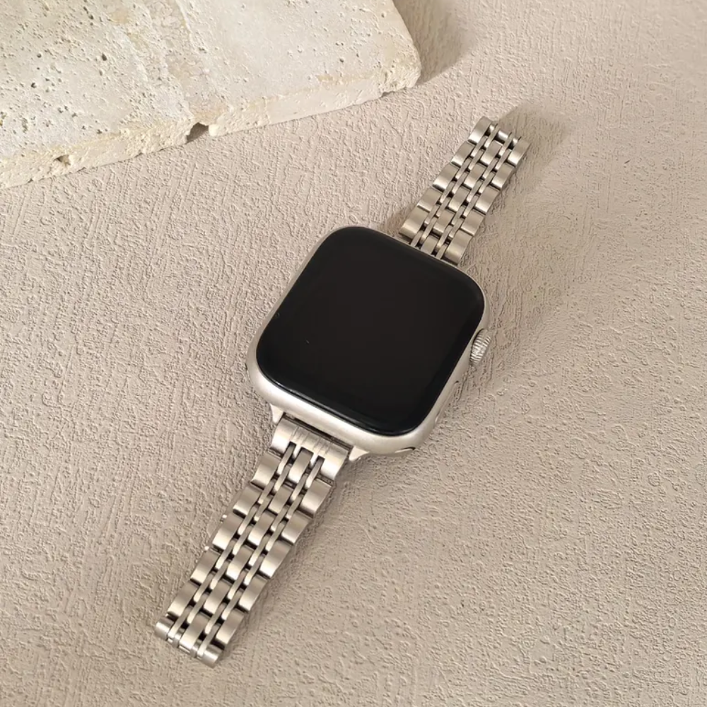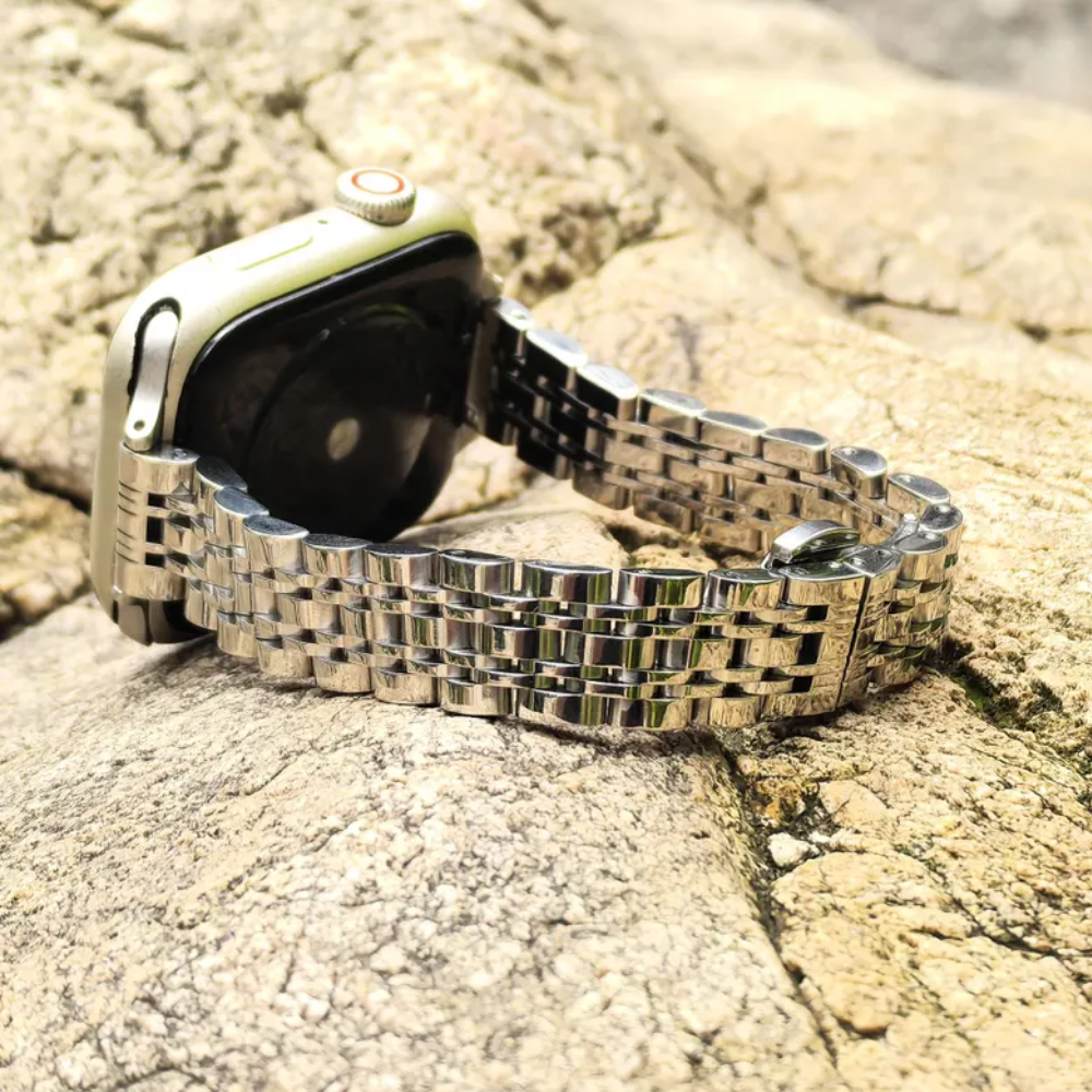 Forjada en acero inoxidable 316L de acabado impecable, la correa Pravelli encarna el lujo refinado. Inspirada por la artesanía italiana, cada eslabón ha sido pulido a mano para lograr un nivel de brillo comparable al de una joya de alta gama.