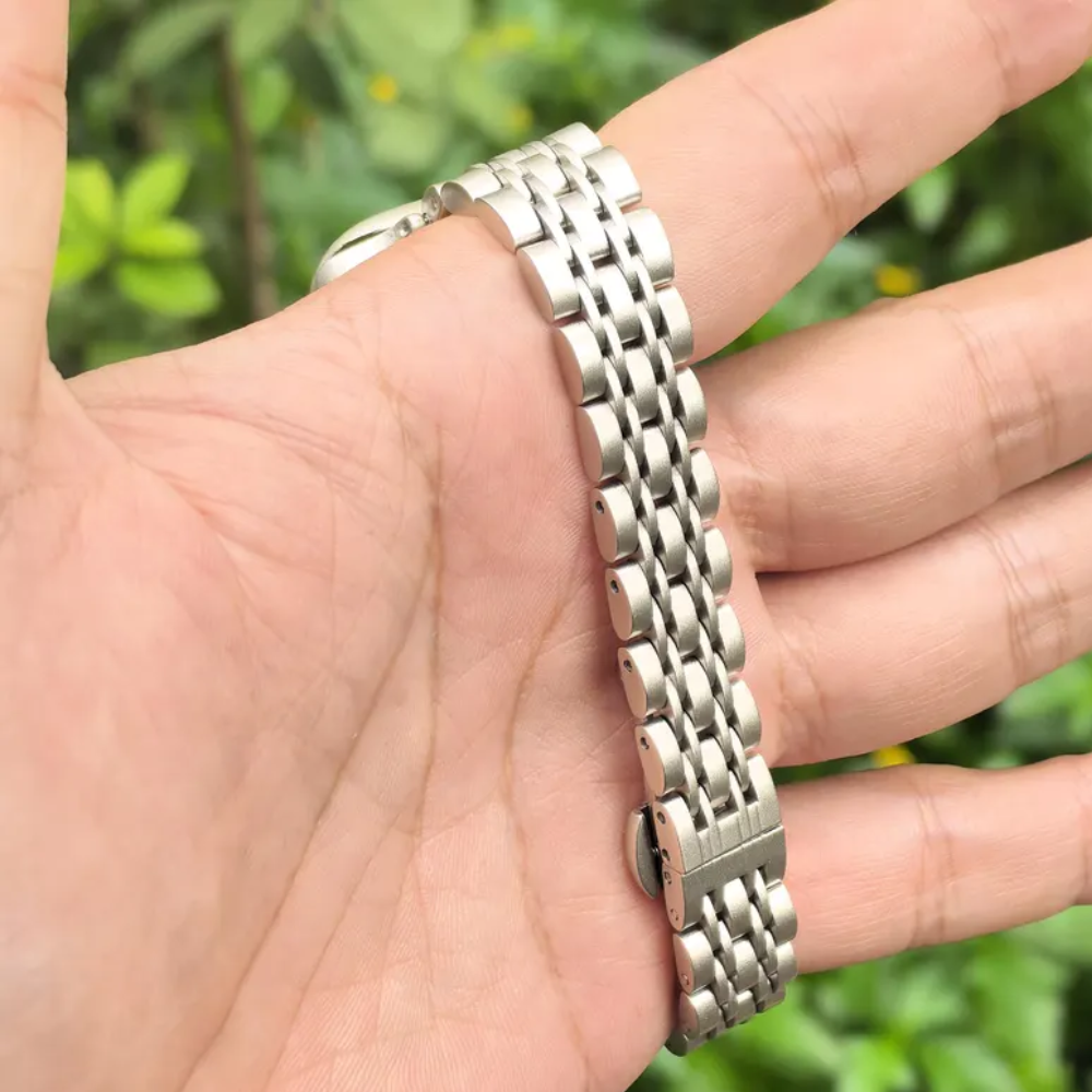 Incluye herramienta para ajuste de longitud, permitiéndote una experiencia de uso personalizada sin perder su estética depurada. Su acero 316L, resistente a la corrosión, asegura que este ícono de estilo perdure contigo, testigo de momentos memorables.