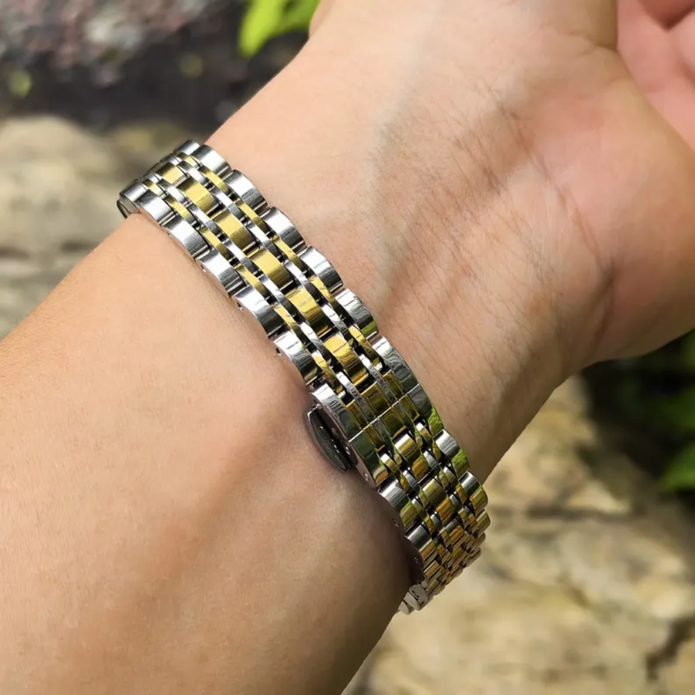 Al colocarla en tu muñeca, introduces un nuevo capítulo en tu narrativa personal: una declaración de sofisticación y presencia. Su diseño equilibrado y su peso delicado elevan cada movimiento con una gracia innata.