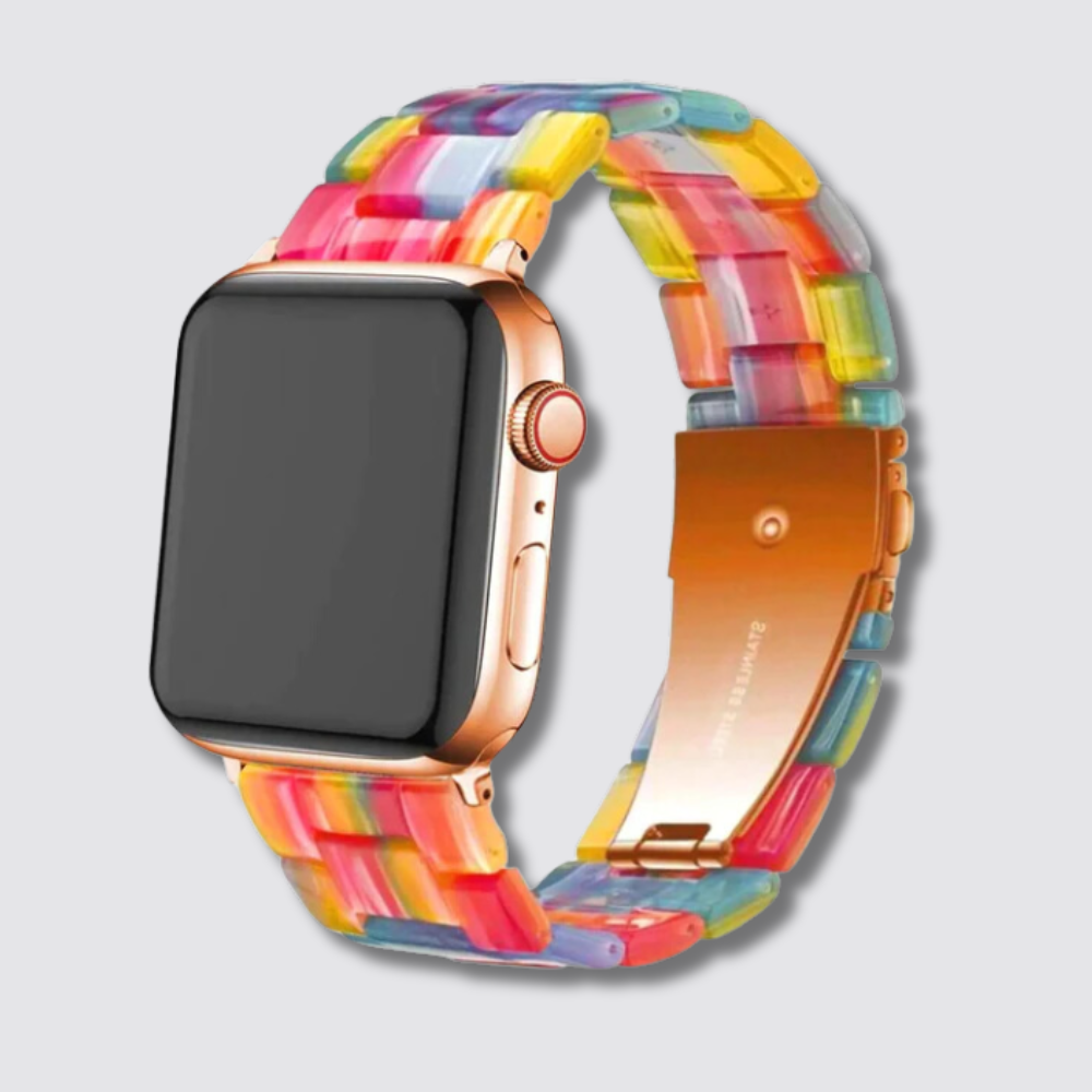 Dale un toque de lujo y ligereza a tu Apple Watch con nuestra Resin Strap, elaborada con resina pulida a mano y cierre de acero inoxidable 316L. Su diseño elegante, resistente al agua y ultra cómodo la hace perfecta para el uso diario o looks sofisticados.