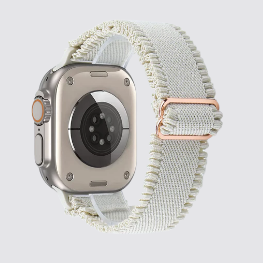 Descubre LUNARE, la correa elástica de nylon premium diseñada para brindar la máxima comodidad y estilo a tu Apple Watch. Su tejido flexible y transpirable ofrece un ajuste perfecto, ideal para uso diario, deporte o cualquier ocasión donde la elegancia y la practicidad se encuentren.